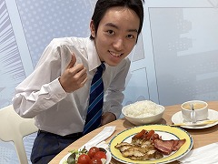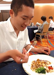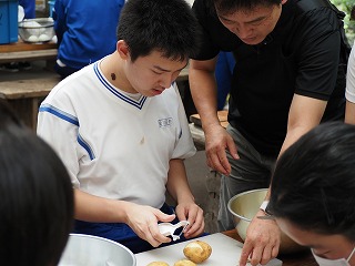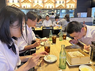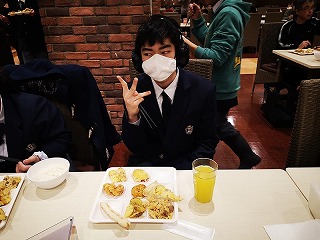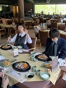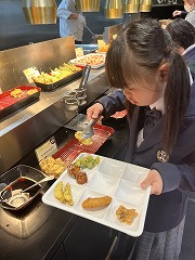 昼食はビュッフェスタイル。友達と何の料理にしようが迷いながら、好きな物を選んで、自分で皿に盛り付けていました。おかわりをしたり、デザートを食べたり、それぞれ楽しい時間を過ごしました。