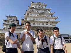 1日目は、お昼に神戸牛のステーキを食べた後、世界文化遺産である姫路城に行きました。白くて美しいお城をバックに写真を撮りました。観光ガイドさんの説明を聞きながら、6階まである天守閣に登ったグループもありました。