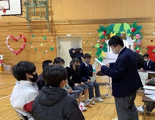 2月27日(金)に、卒業生を送る会が開かれました。「お世話になった3年生に感謝の気持ちを伝える」ことを目標に、在校生はこの日のために約一ヶ月かけて準備を進めてきました。当日は、午前中のお楽しみ会から始まり、交流昼食、午後のセレモニーと、どの活動も多くの笑顔が見られ、心温まるステキな会となりました。卒業生にとっては最後の高等部行事となりましたが、きっと最高の思い出となったことと思います。