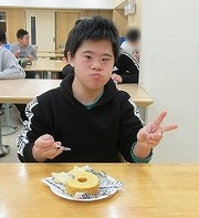 誕生会は、月に一回開催しています。誕生月の生徒は、名前を呼ばれて、みんなの前に出てお祝いしてもらいます。友達や職員からのメッセージが書かれたバースデーカードが渡され、とても嬉しそうにしています。その後、ケーキも食べて、たくさんの笑顔が見られます!!