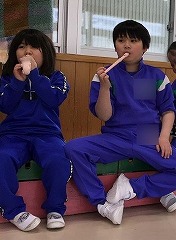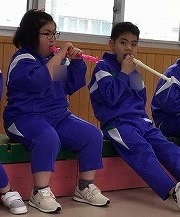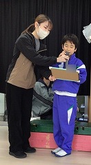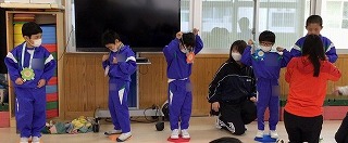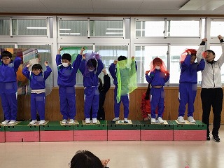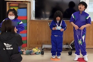 3月19日(木)にがんばった会をしました。初めは、1年間の思い出を、スライドショーで振り返りました。1年前、小さかった自分の姿にみんなびっくりしていました。おたのしみタイムでは、2、3年生は本番に向けて練習してきたことを、みんなの前で発表しました。1年生は2、3年生と一緒に手遊びをして楽しみました。その後、進級の話を聞くと、来年に向けて想像を膨らませていました。最後には、「がんばったメダル」を先生から受け取り、みんな大喜びでした。