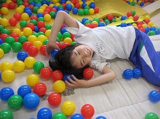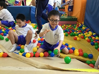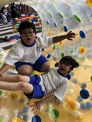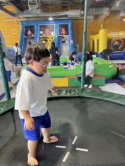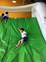 6月6・7日と6月13・14日の日程で、2グループに分かれてミックス遊びをしました。エアトランポリン、カラーボール遊び、光遊び、シャボン玉遊びの4つのコーナーが設けられ、始まりのベルが鳴ると笑顔で各コーナーに向かいました。好きな遊びを見つけると時間を忘れて夢中で遊び、楽しそうな声とたくさんの笑顔があふれていました。