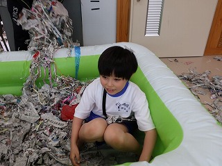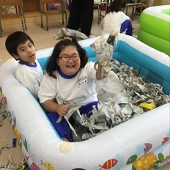 紙遊びをしました。新聞紙プールでダイナミックに遊んだり、手回しシュレッダーや折り紙で遊んだりとそれぞれが楽しみました。