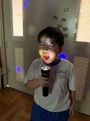 今年度のミックス遊びでは、エアポリン、カラーボール遊び、光遊び、しゃぼん玉遊びの4つのコーナーが設けられました。「ミックス遊び、始めー!」の合図で、自分の気になるコーナーに一直線。笑顔で遊ぶ姿や、夢中で遊ぶ姿がたくさん見られました。終わりの合図があるまで、時間いっぱい楽しみました。