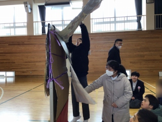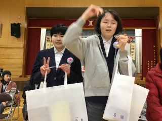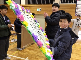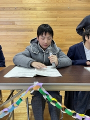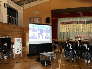 2月26日(水)に体育館で卒業生を送る会が行われました。卒業生グループ、進行・会場グループ、プレゼントグループ、ゲーム・食事グループの4つのグループに分かれ、それぞれ当日まで準備を進めました。当日は、卒業生による3年間の思い出スライドショー、演奏、ダンスや在校生が企画したゲームを楽しみました。昼食は注文したお弁当を食べました。準備や練習の成果を本番で発揮することができ、思い出に残る会になりました。