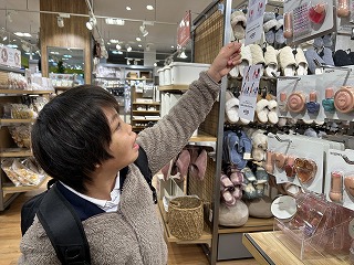 10月23日(水)ワイプラザ新保店に行きました。11月2日(土)に行われる文化祭に向けて、必要な商品を探したり、セルフレジの支払いを経験したりしました。食品売り場や100円均一ショップなど、広い館内をマナーを守って行動しました。