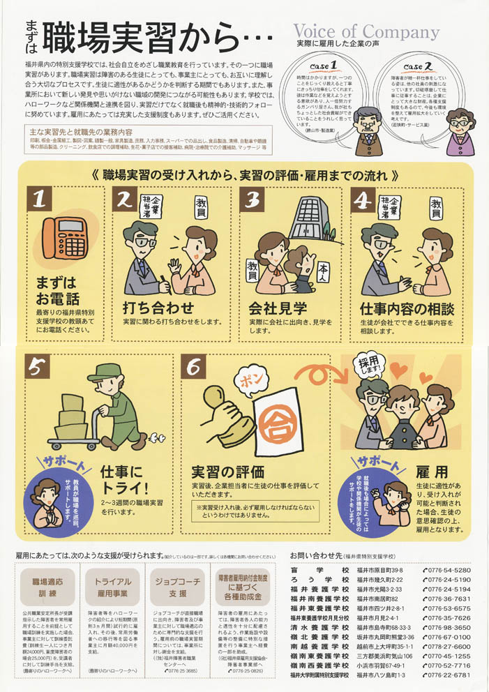 生徒たちにとって、これらの現場実習は、社会経験の幅を広げると共に仕事内容を理解し、自己の適性や課題を見いだし、卒業後の進路について考える貴重な機会となります。