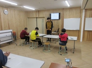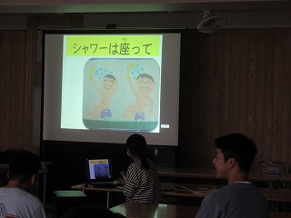 入浴のマナーや手順、風邪の予防、友達との適切な関わり方、災害時の避難の仕方など日常生活に必要な事について、スライドを使いクイズを交えて、分かりやすく伝えています。内容は、寄宿舎だより「大地」に掲載し、家庭にもお知らせしています。